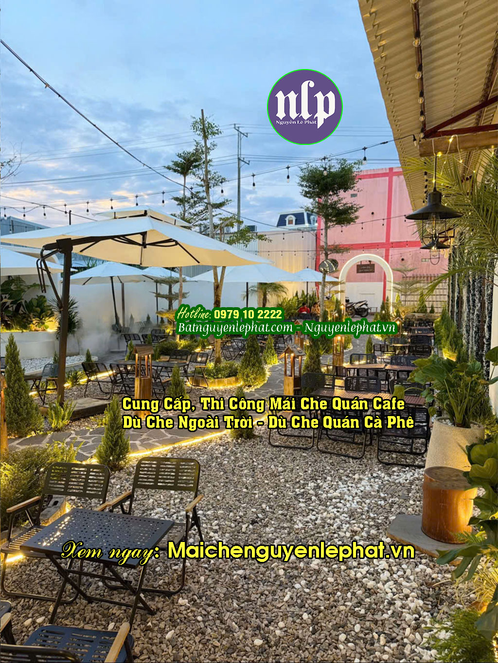 Nguyễn Lê Phát là tổng kho dù che nắng, dù che quán cafe uy tín tại Gia Lai, chuyên cung cấp các giải pháp che nắng mưa ngoài trời chất lượng cao, phục vụ quán cà phê, quán nước, khu du lịch, nhà hàng sân vườn và bán hàng lưu động trên toàn khu vực Tây Nguyên.